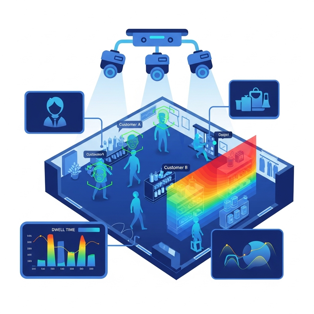 리테일: 고객 동선 분석, 체류 시간 측정, 맞춤형 마케팅